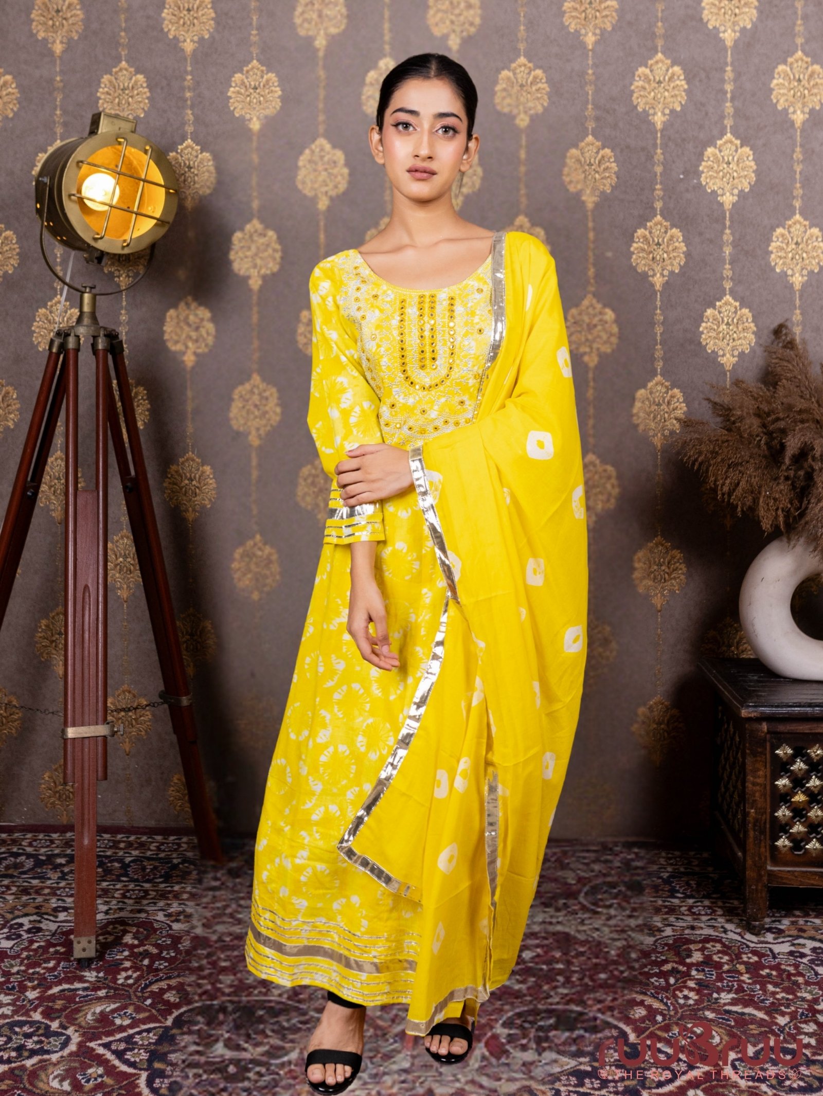Radiate regal charm and effortless grace in our ‘Ladies Suit 60’s Cotton,’ an exquisitely crafted ensemble that marries the unparalleled softness and breathability of premium 60’s count cotton with the dazzling allure of traditional embellishments. The top and bottom provide a flawlessly comfortable and structured fit, serving as a luxurious foundation for the elaborate foil embroidery and shimmering Gota Patti work that creates a captivating texture and a mesmerizing play of light. Completed with a lightweight and fluid cotton dupatta that balances the opulence with understated elegance, this suit is a masterpiece designed for making a grand impression at weddings, festive galas, and any special occasion where sophisticated style is paramount.