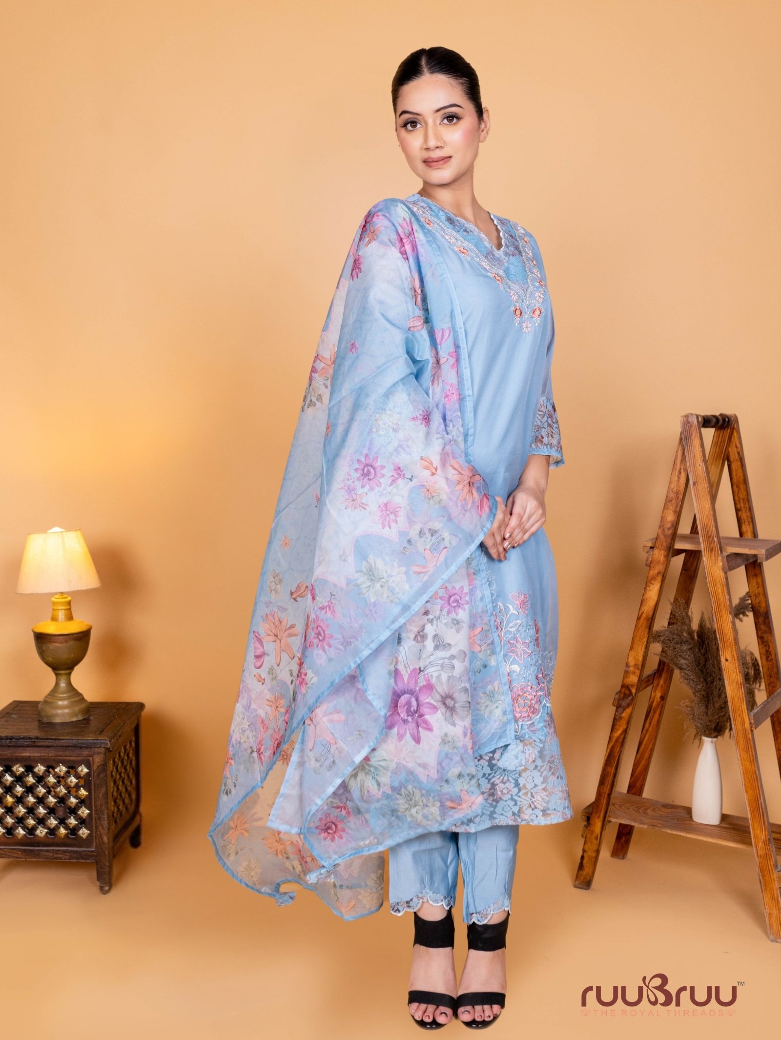 Indulge in sheer opulence with our ‘Premium Ladies Suit Organza Silk,’ an ensemble that exudes luxury and artistry for the most discerning tastes. The exquisite Organza Silk top, lined with soft Mal Cotton for comfort, serves as a masterpiece of craftsmanship, adorned with intricate hand work and delicate embroidery that creates a captivating texture and dimension. Paired with fluid, graceful Viscose Silk bottoms that drape beautifully, the outfit is elevated by a breathtaking Organza Silk dupatta featuring a complementary digital print, adding a modern contrast to the traditional embellishments and completing a look of unparalleled elegance perfect for grand weddings, red-carpet events, and any occasion where making a memorable impression is essential.