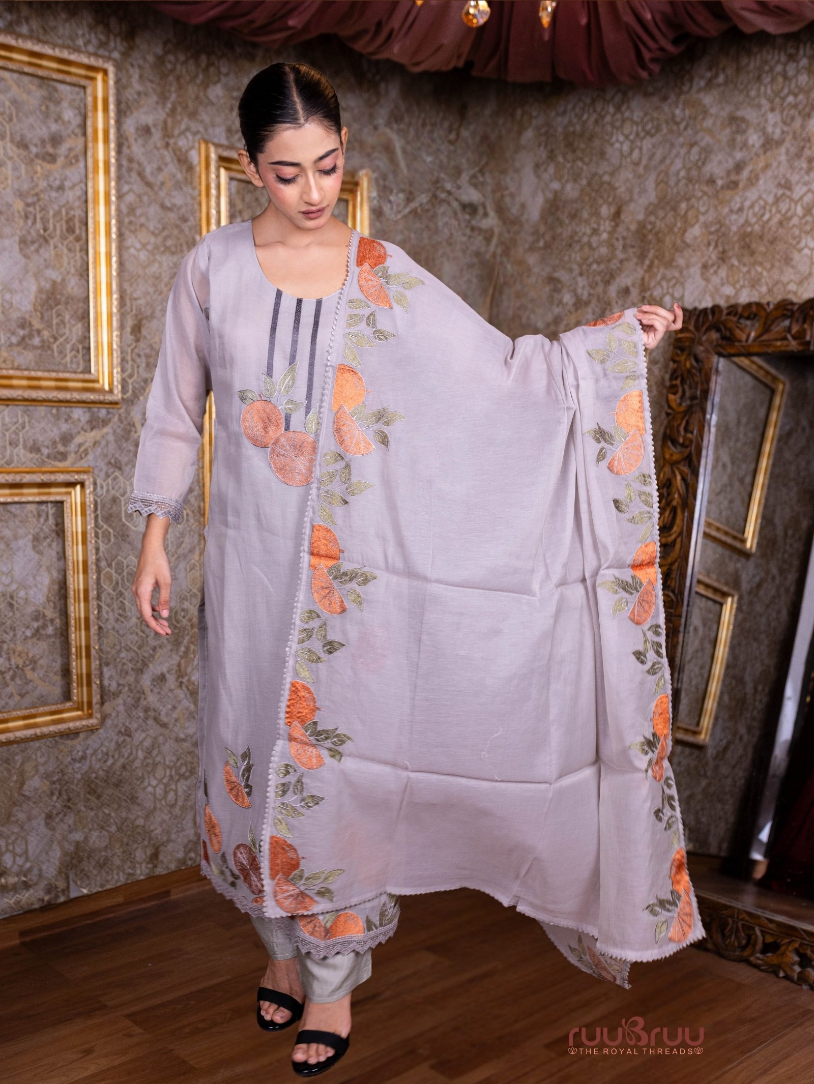Embrace the heritage of luxury in this exquisite Pure Chanderi ladies’ suit, a celebration of timeless craftsmanship and sophisticated elegance. Woven from the finest Chanderi known for its lightweight texture and characteristic shimmer, the top is elevated with premium embroidery, adding a dimension of opulent detail while the soft mal cotton lining ensures effortless comfort. The ensemble is paired with a fluid pure viscose bottom that offers a graceful drape and movement. Magnifying its grandeur, the matching Pure Chanderi dupatta is meticulously adorned with complementary premium embroidery, creating a perfectly coordinated and utterly refined look of unparalleled elegance, making it the ultimate choice for discerning women at weddings and prestigious celebrations.