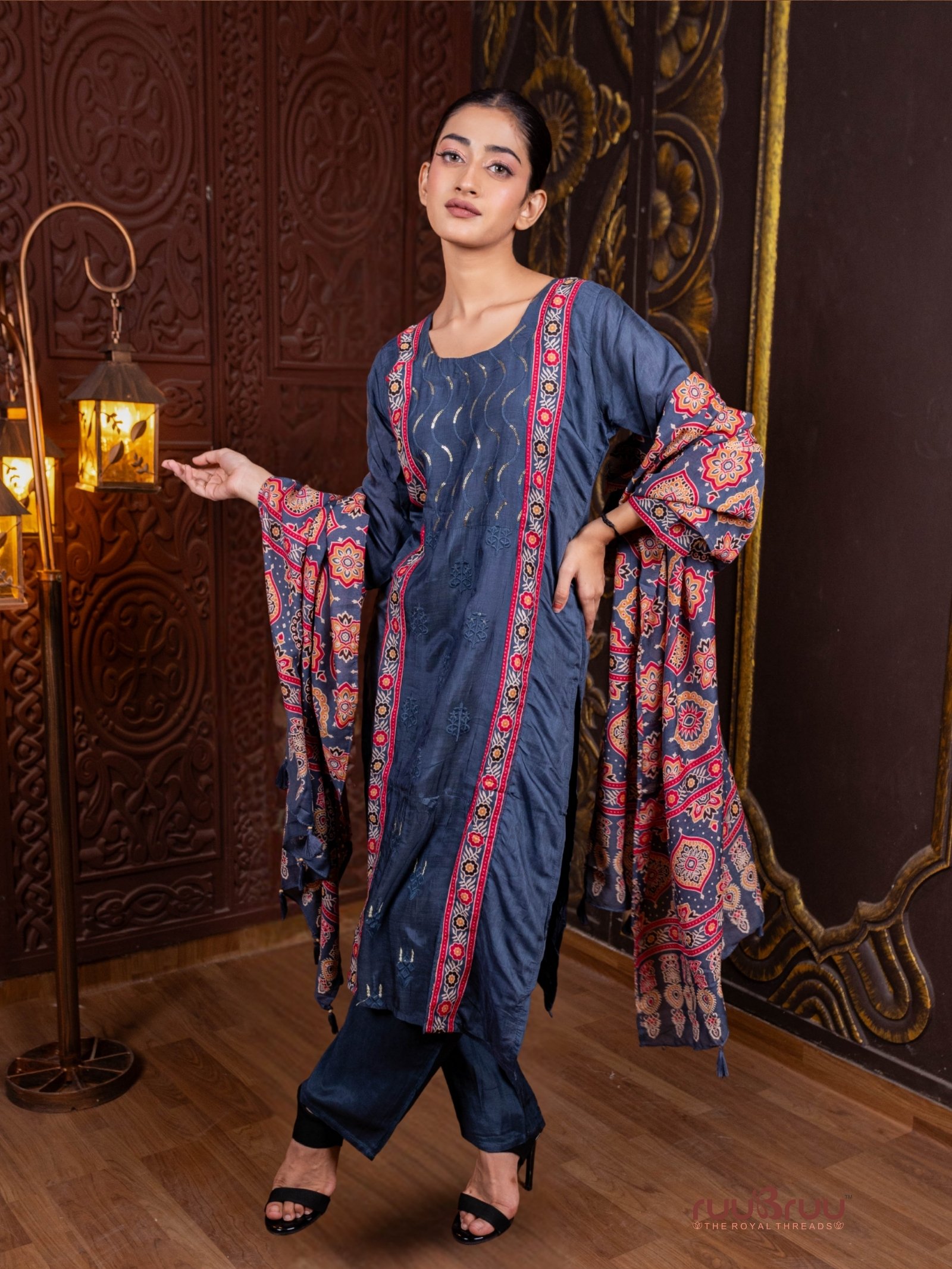 Pure Muslin Ladies Suit with Ajrak Dupatta.