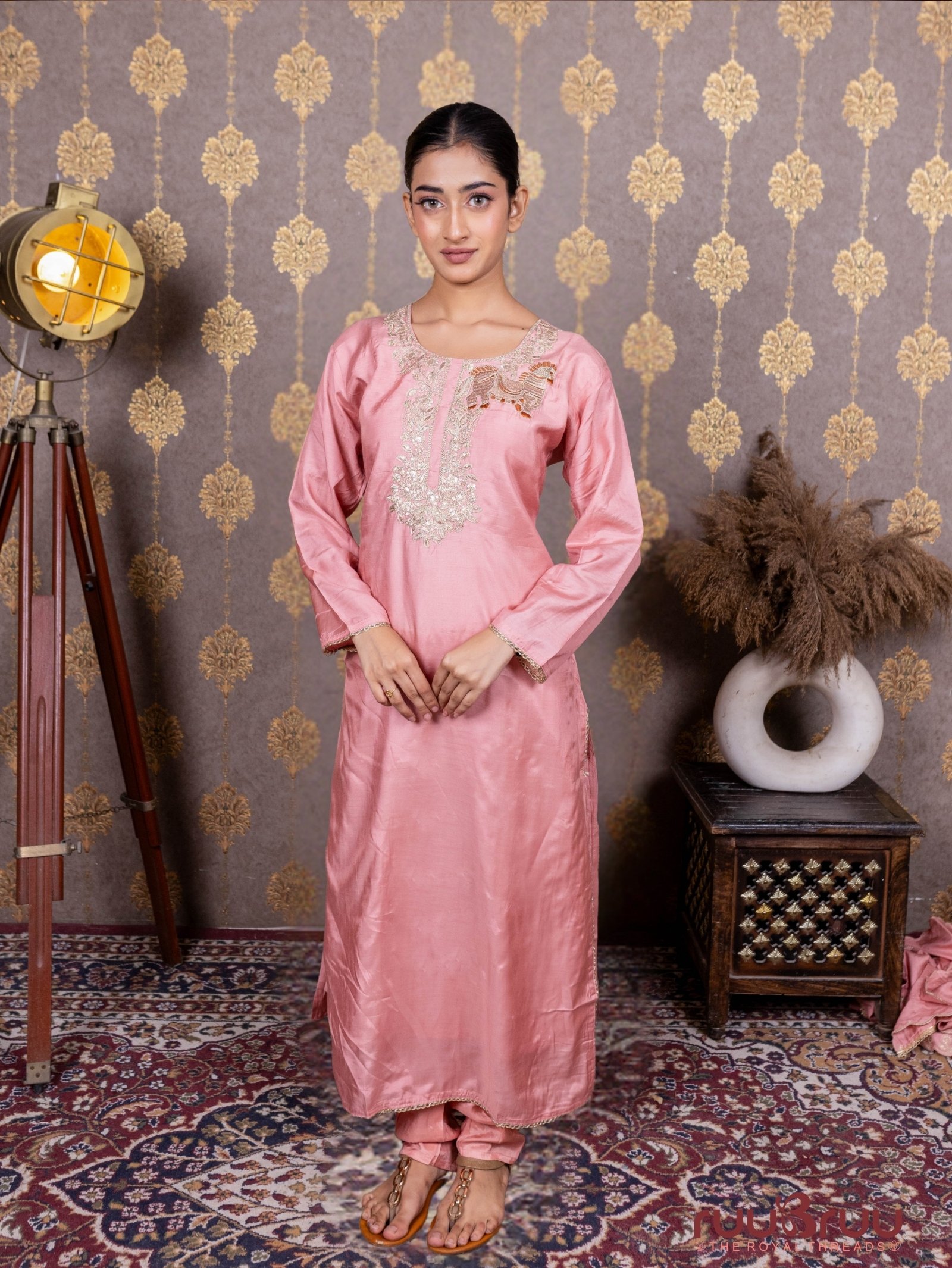 Exude regal elegance in this magnificent Pure Viscose Silk ladies’ suit, designed for those who appreciate traditional opulence. The ensemble is richly adorned with heavy Zari embroidery, showcasing exquisite metallic artistry that catches the light with every movement. The top, luxuriously crafted from pure viscose silk and lined with soft mal cotton for comfort, is paired with a fluid pure viscose bottom for a graceful silhouette. The grandeur is amplified by the matching dupatta, also in pure viscose silk and elegantly detailed with complementary Zari embroidery, creating a perfectly coordinated and utterly sophisticated look ideal for weddings and grand celebrations.